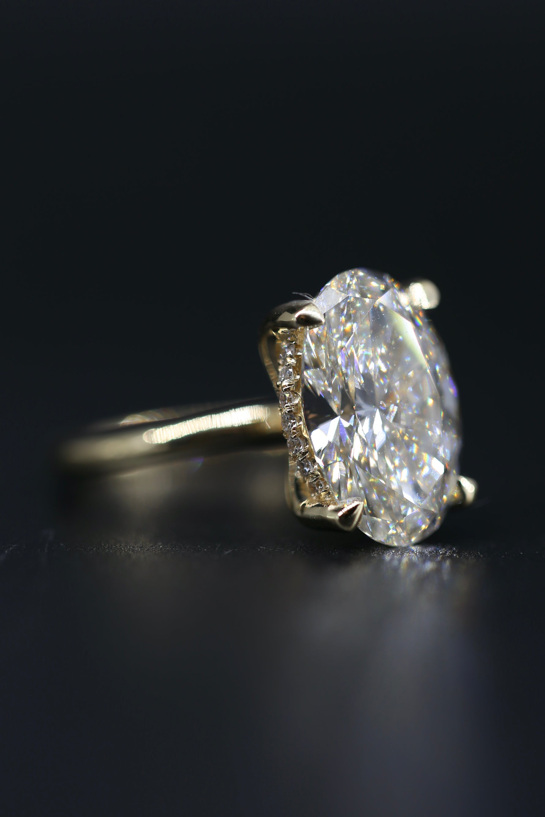 4.5 Carat Oval Lab grown diamond Hidden Halo Dainty Yellow Gold