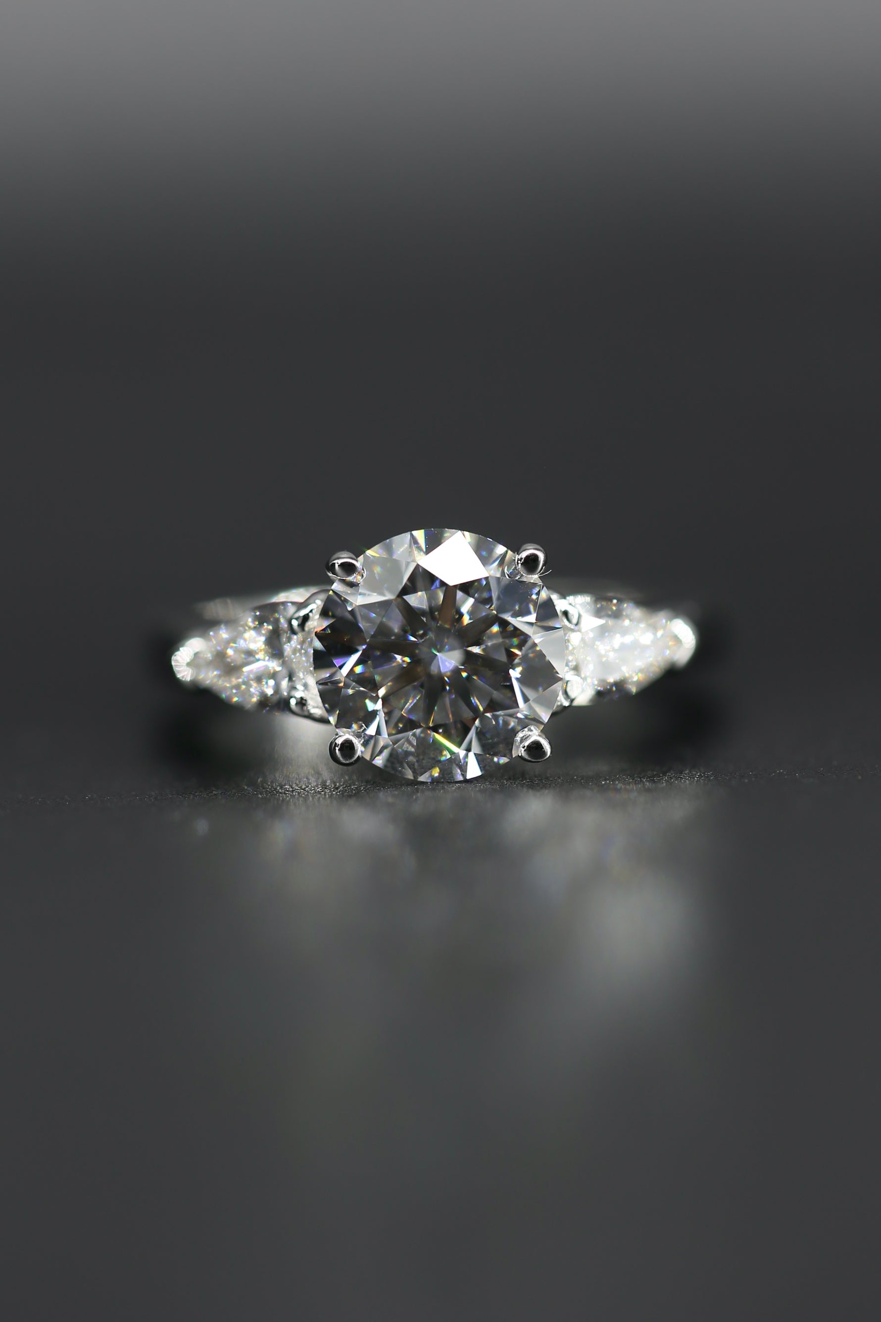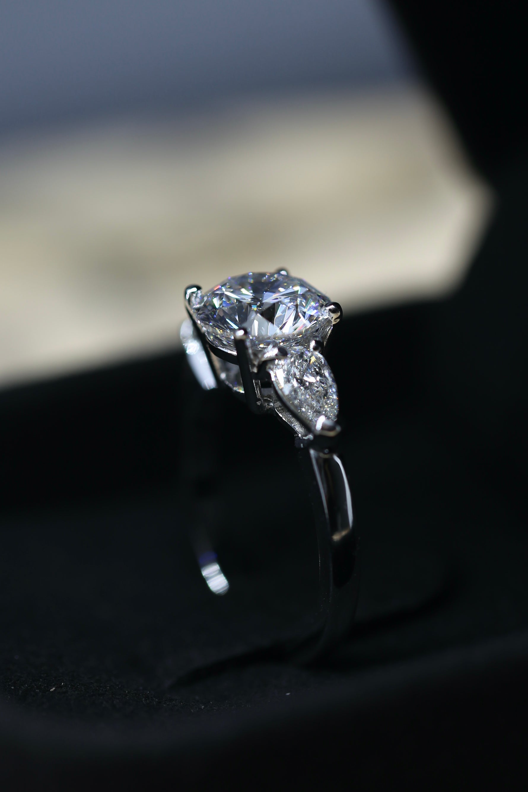 3.13 Carat Round Brilliant PearShape Lab-Grown Diamond Ring