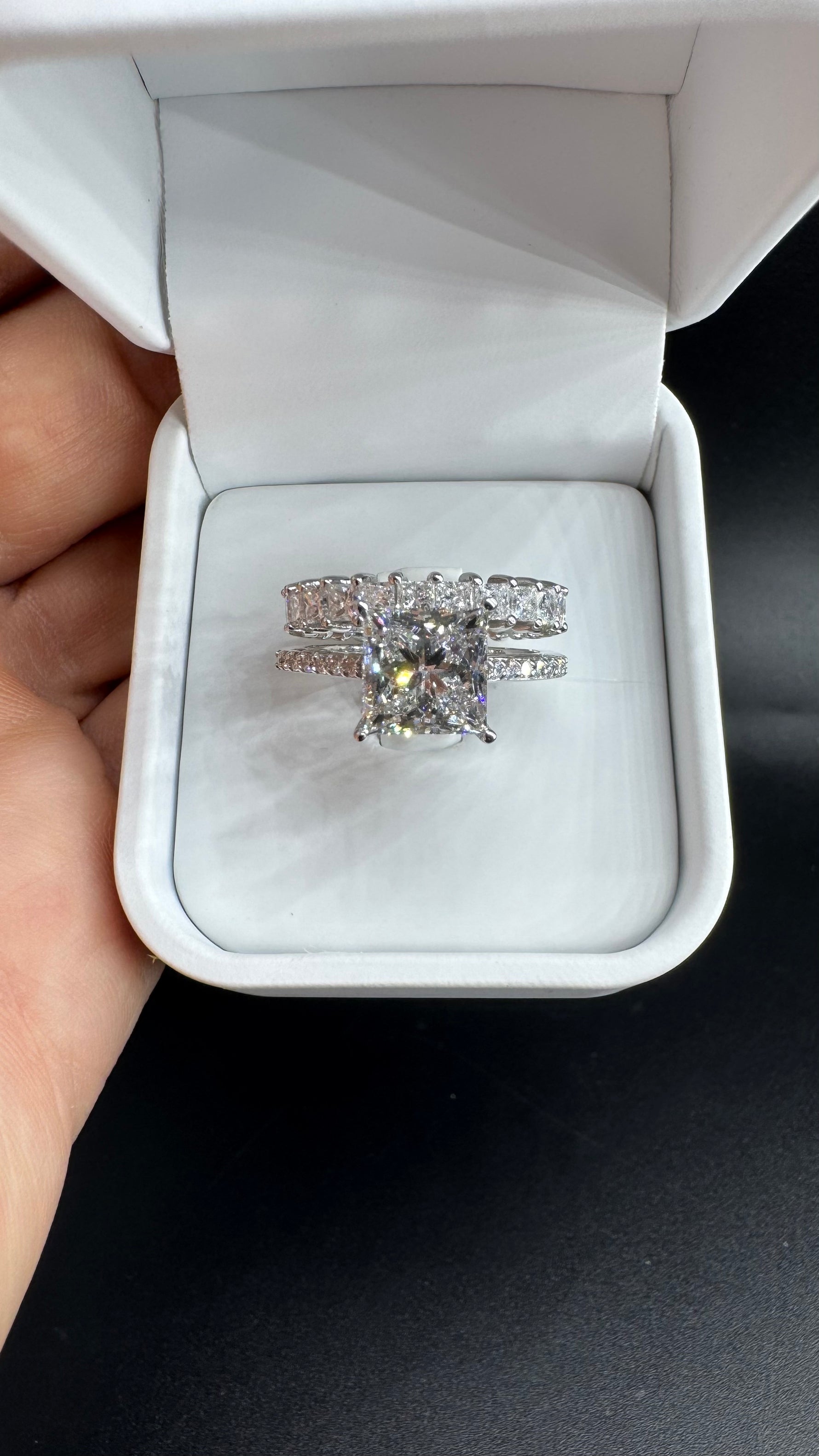 👑 6 Carat Princess Cut Lab-Grown Diamond Bridal Set – Engagement Ring & Eternity Band – 14K White Gold – Certified F Color VS2