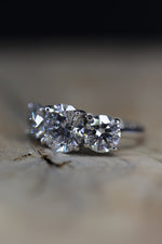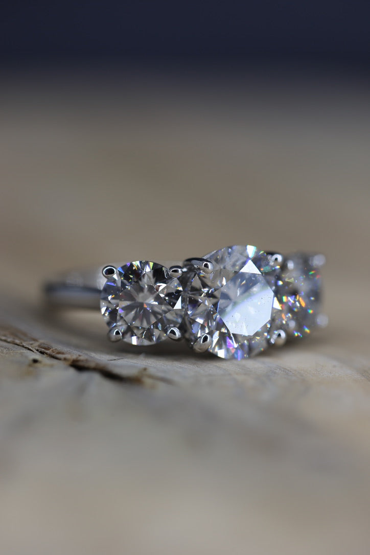 The three-stone (trilogy) ring is one of the most iconic engagement styles in history: