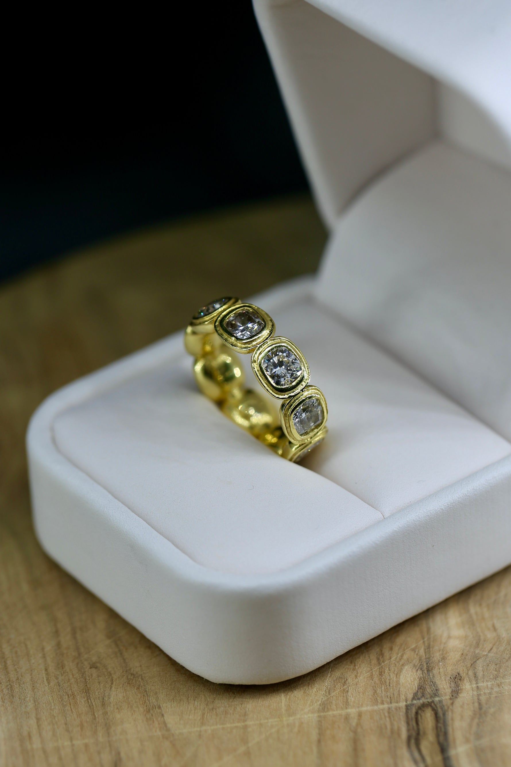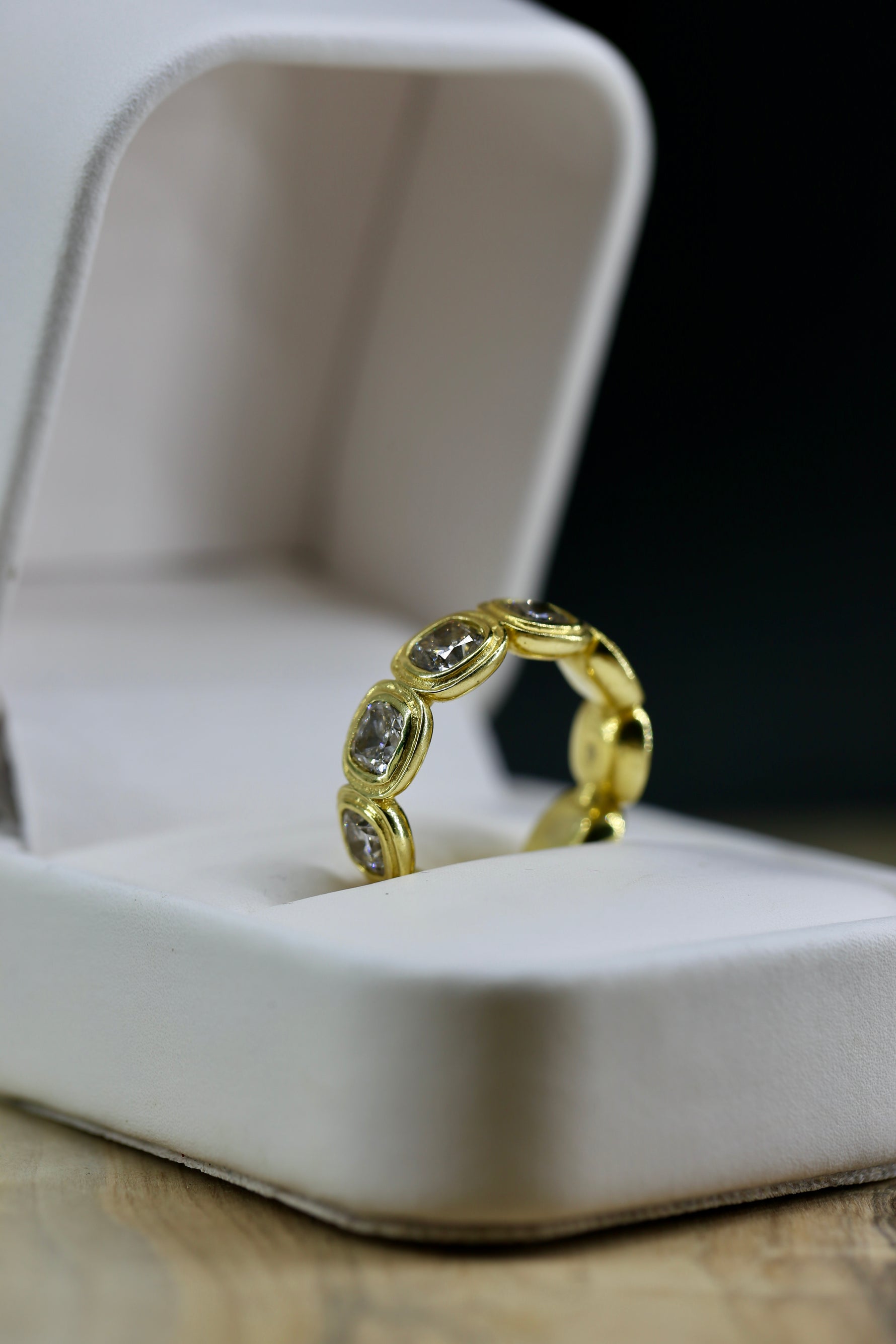 Antique 5 Carat Cushions Lab Grown Diamond Eternity Band Yellow Gold