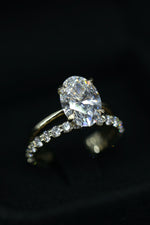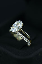This exquisite bridal set features a 3.0-carat oval-cut lab-grown diamond engagement ring, paired with a delicate full eternity band. Crafted in 14K yellow gold, this set is a perfect blend of timeless elegance and modern luxury.