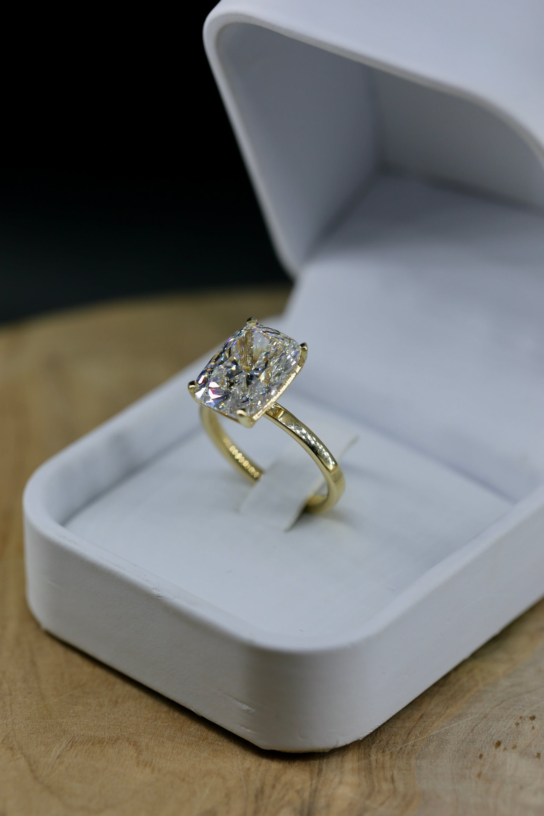 ✨ Elegant. Timeless. Powerful. This 6.00 carat rectangular cushion cut lab grown diamond radiates with exceptional brilliance and balance. Expertly crafted by hand in Los Angeles, it features a classic four-prong solitaire design in warm 14k yellow gold — the ultimate expression of refined simplicity and modern luxury.